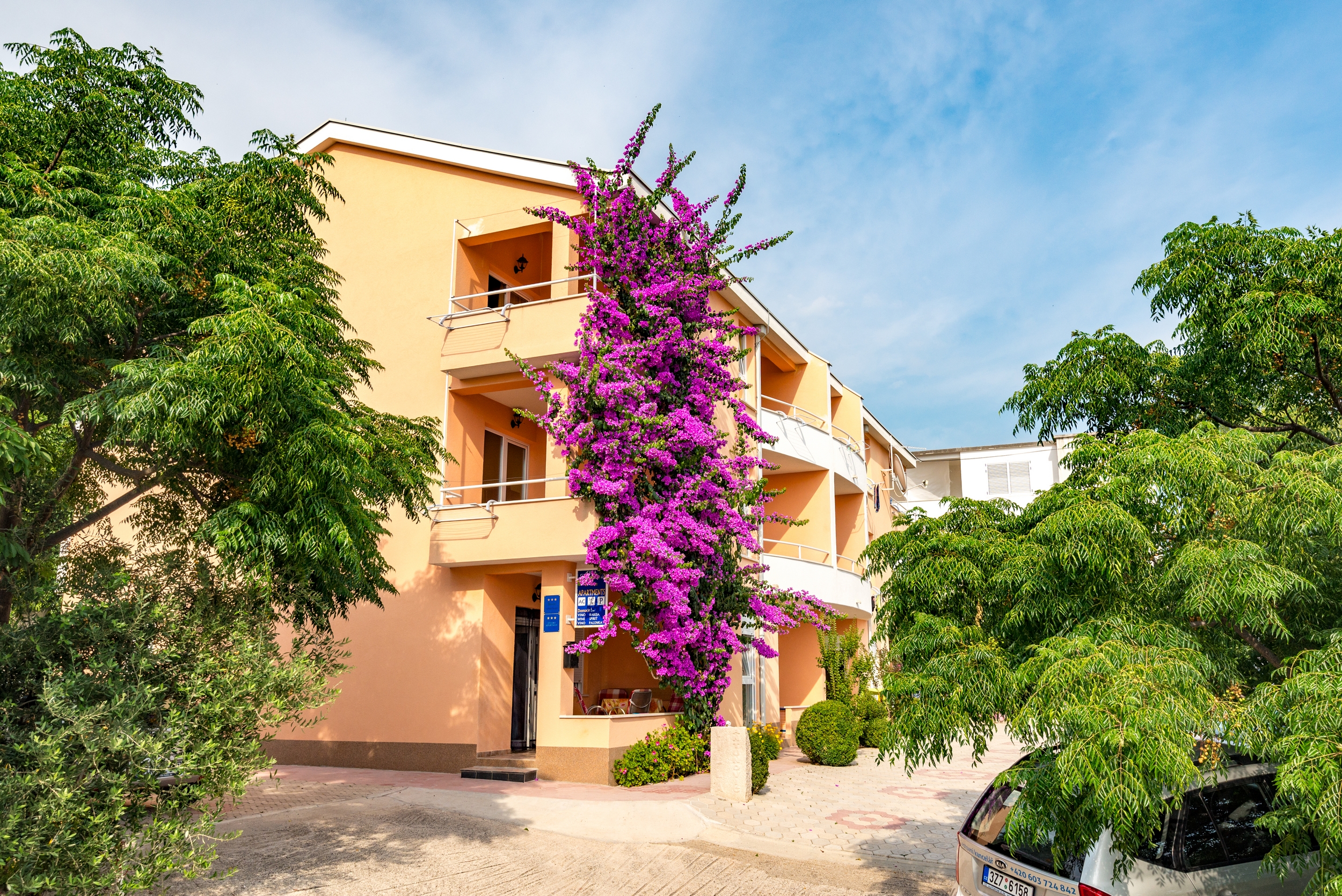 Všechny apartmány jsou vybaveny klimatizací, internetem a televizí, objekt se nachází jen 40 m od moře.